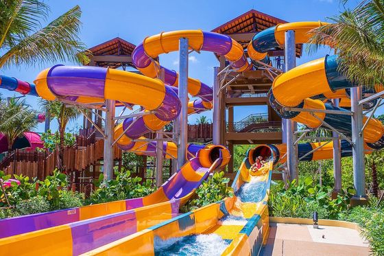 Customized Colorful Fiberglass Water Park Slide Ending with Pool for Resort Hotels 0